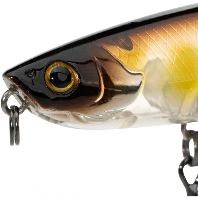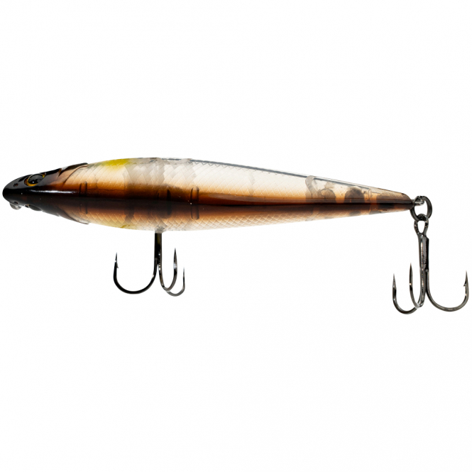 Der LMAB KØFI Dog Vibe 85F ist ein stickbait, der speziell für die „Walk-The-Dog“-Technik entwickelt wurde. Bei dieser Technik wird der Köder mit kurzen Rucken über die Wasseroberfläche geführt, wobei er sich in einem Zick-Zack-Muster bewegt und so die Aufmerksamkeit von Raubfischen auf sich zieht. Das schlanke Kopfprofil und die flache Kopfmulde sorgen dafür, dass der Köder bei jedem Ruck kleine Wasserspritzer erzeugt – eine zusätzliche Verlockung für die Fische.