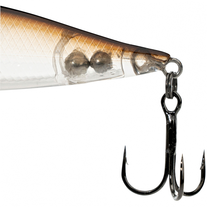 Anders als viele andere Köder kommt der Dog Vibe 85F ganz ohne Rasseln aus. Stattdessen sind kleine Balancekugeln im Köder eingebaut, die ein sanftes Klackern erzeugen. Diese dezente Geräuschkulisse macht den Köder zu einem „Low-Sound“ Hardbait. Dank der schwarzen Haken und Sprengringe gibt es keine störenden Lichtreflexionen, wodurch der Köder dezent bleibt und sich gezielt durch seine Bewegungen und das Design ins Blickfeld der Fische spielt. Genau diese Kombination aus sanfter Aktion, subtiler Optik und dezentem Sound macht den LMAB KØFI Dog Vibe 85F auch in schwierigen Gewässern besonders fängig.