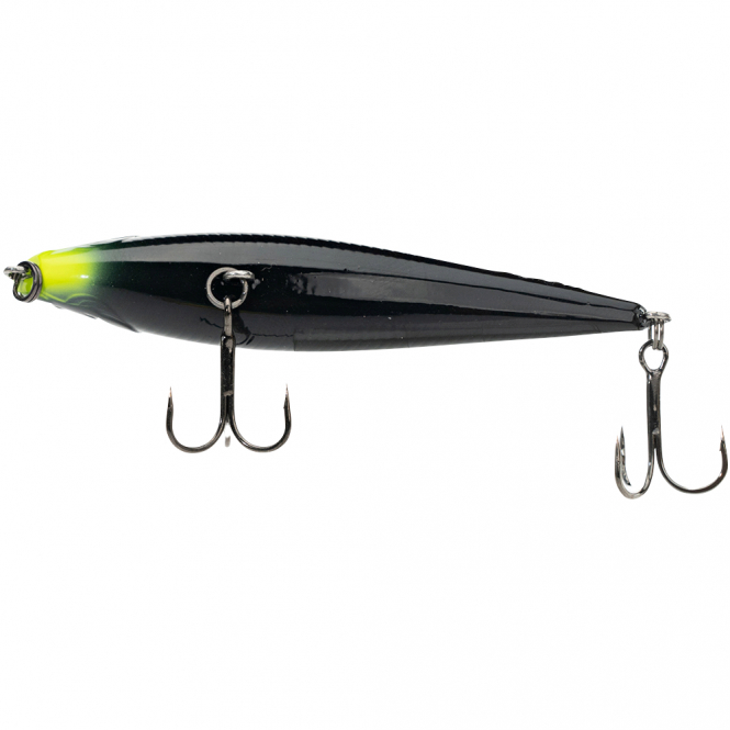 Der LMAB KØFI Dog Vibe 85F ist ein stickbait, der speziell für die „Walk-The-Dog“-Technik entwickelt wurde. Bei dieser Technik wird der Köder mit kurzen Rucken über die Wasseroberfläche geführt, wobei er sich in einem Zick-Zack-Muster bewegt und so die Aufmerksamkeit von Raubfischen auf sich zieht. Das schlanke Kopfprofil und die flache Kopfmulde sorgen dafür, dass der Köder bei jedem Ruck kleine Wasserspritzer erzeugt – eine zusätzliche Verlockung für die Fische.