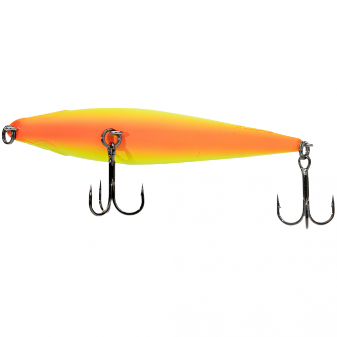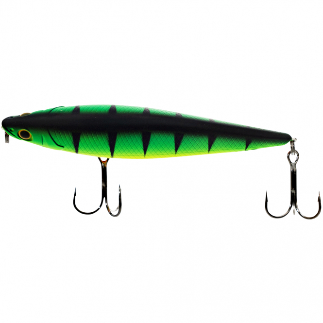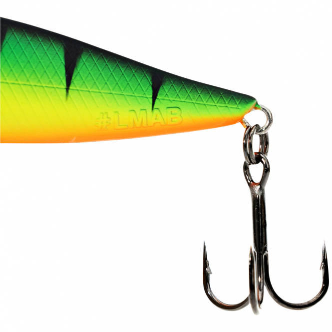 Der LMAB KØFI Dog Vibe 85F ist ein stickbait, der speziell für die „Walk-The-Dog“-Technik entwickelt wurde. Bei dieser Technik wird der Köder mit kurzen Rucken über die Wasseroberfläche geführt, wobei er sich in einem Zick-Zack-Muster bewegt und so die Aufmerksamkeit von Raubfischen auf sich zieht. Das schlanke Kopfprofil und die flache Kopfmulde sorgen dafür, dass der Köder bei jedem Ruck kleine Wasserspritzer erzeugt – eine zusätzliche Verlockung für die Fische.