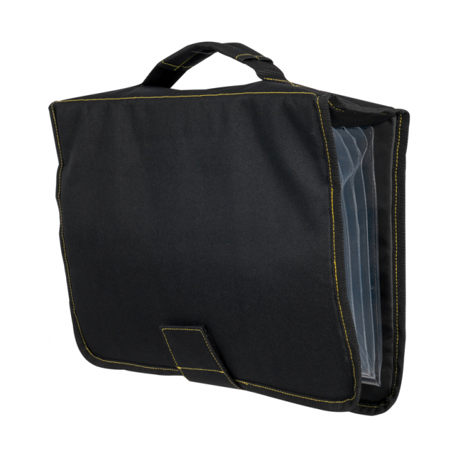 Praktische Transporttasche für fertig gebundene Angelausrüstung. Ausgestattet mit sechs Brieftaschen mit Clipverschluss und einem stabilen Tragegriff. Hergestellt aus strapazierfähigem 500D- und 300D-Polyester für langlebigen Einsatz. Kompakte Maße von 26,5 × 37 × 11 cm machen die Tasche handlich und ideal für unterwegs. Preiswertes und robustes Gepäckstück für Angler.