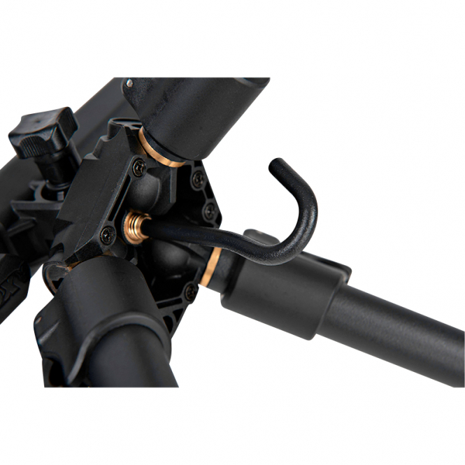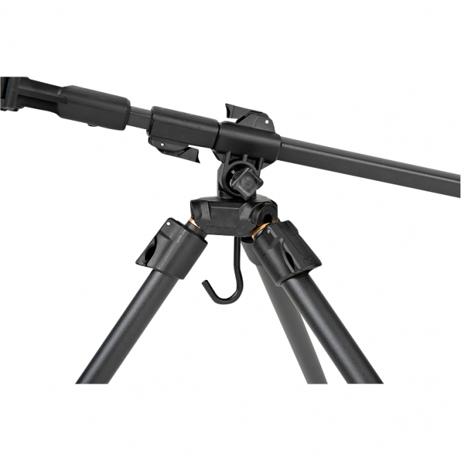Rod Pod im Tripod-Stil mit 2- und 3-Ruten Buzzer Bars. Zwei mögliche Beinwinkelverstellungen zwischen Standardhöhe und flachem Aufbau sowie separate Höheneinstellung von 34 auf 55 cm sind einstellbar. Inkl. Gewindehaken und Tragetasche mit Doppelreißverschlüssen. Taschenmaße: 80 x 15 x 16 cm.