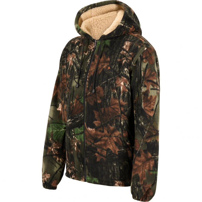 Thermo Fleecejacke im Camou-Design. Mit Kapuze, Weitenregulierung am Bund und Gummizug in den Ärmelbündchen. Das Thermo-Innenfutter ist im Bereich des Torsos sowie in der Kapuze mit Teddyfleece versehen und bietet besonders angenehmen Tragekomfort. Mit 2 Einschubtaschen. Farbe: camou/grün.