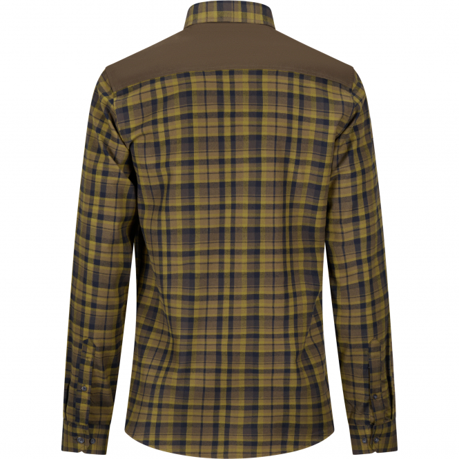 Die Brusttasche, die Schulterpartie und der obere Rücken sind mit einem farblichen Kontrast abgesetzt, was dem Kleidungsstück eine moderne und markante Optik verleiht. Die Farbkombination aus oliv und schwarz sorgt für einen stilvollen Look, der sich vielseitig in der Outdoor- und Jagdbekleidung einsetzen lässt. Dieses Design unterstreicht den funktionalen Charakter der Kleidung und passt zu hochwertigen Jagdhemden mit praktischen Details wie Brusttaschen und verstellbaren Manschetten. Farbe: oliv mit Kontrasten in schwarz.