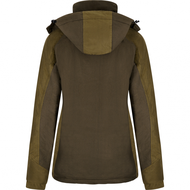 Der leicht taillierte Schnitt und der verlängerte Rückenteil sorgen in Kombination mit der Lagotex Membrane (5.000 mm Wassersäule) für optimalen Schutz bei jeder Witterung. Die Atmungsaktivität von 3.000 g/m²/24h sorgt für eine gute Luftzirkulation. Durch die verschweißten Nähte kann keine Feuchtigleit eindringen. Mit zwei seitlich aufgesetzten Taschen und einer Brusttasche mit Reißverschluss. Stehkragen mit zusätzlicher abnehmbare Kapuze. Kordelzug im Bund zum regulieren. Farbe: dunkel olive mit dunkel braun.