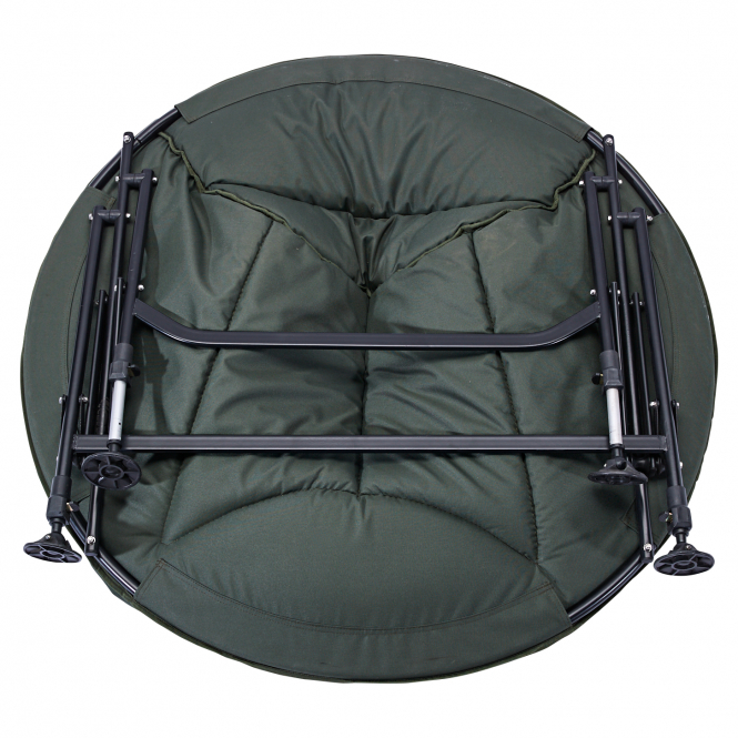 Der stabile Stahlrahmen lässt sich in wenigen Handgriffen auf und zusammenklappen, was Transport und Lagerung deutlich vereinfacht. Rutschfeste Schlammfüße geben sicheren Stand auf weichen Ufern, Stegen oder unebenem Gelände.