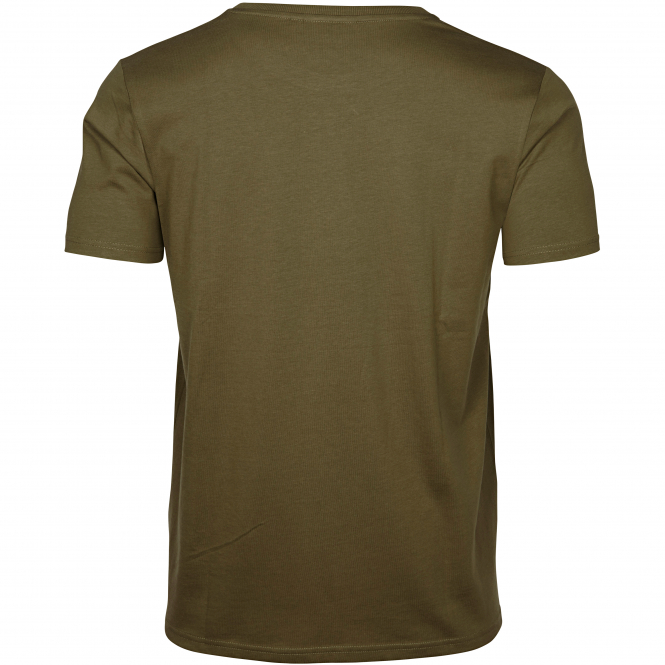 Ein klassisches T-Shirt mit einem Rundhalsausschnitt für zusätzlichen Komfort und einen stilvollen Fischdruck auf der Vorderseite. Farbe: oliv.